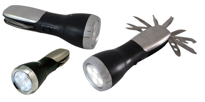 Linterna metalica multifunción 9 funciones, 3 pilas AAA no incluidas. Medidas: 14 x 3.5 cm.